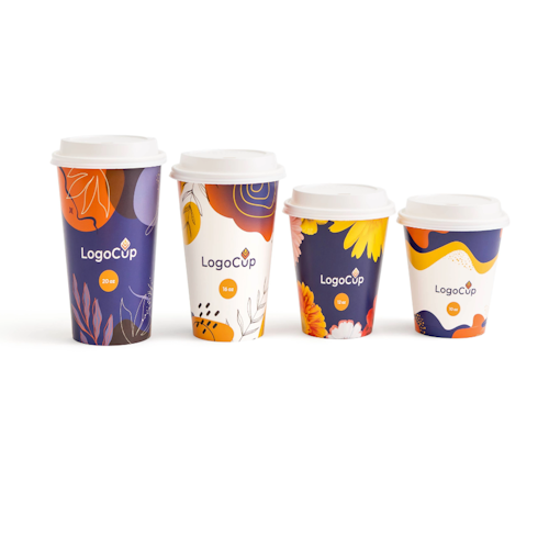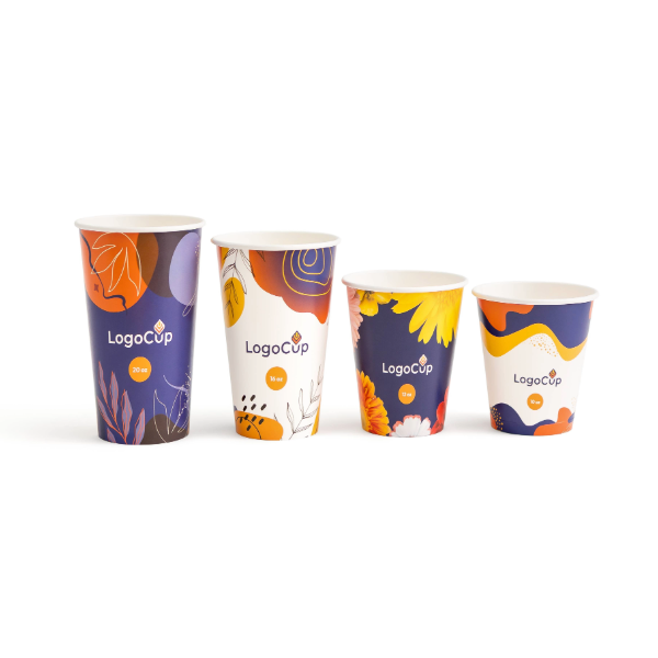 Classic paper cup in standard single walled or premium double walled options. Full coverage, digital, 4-color printing in four convenient sizes.Â
