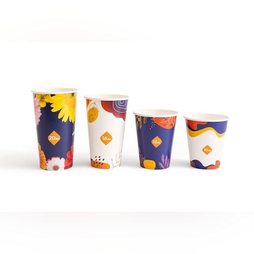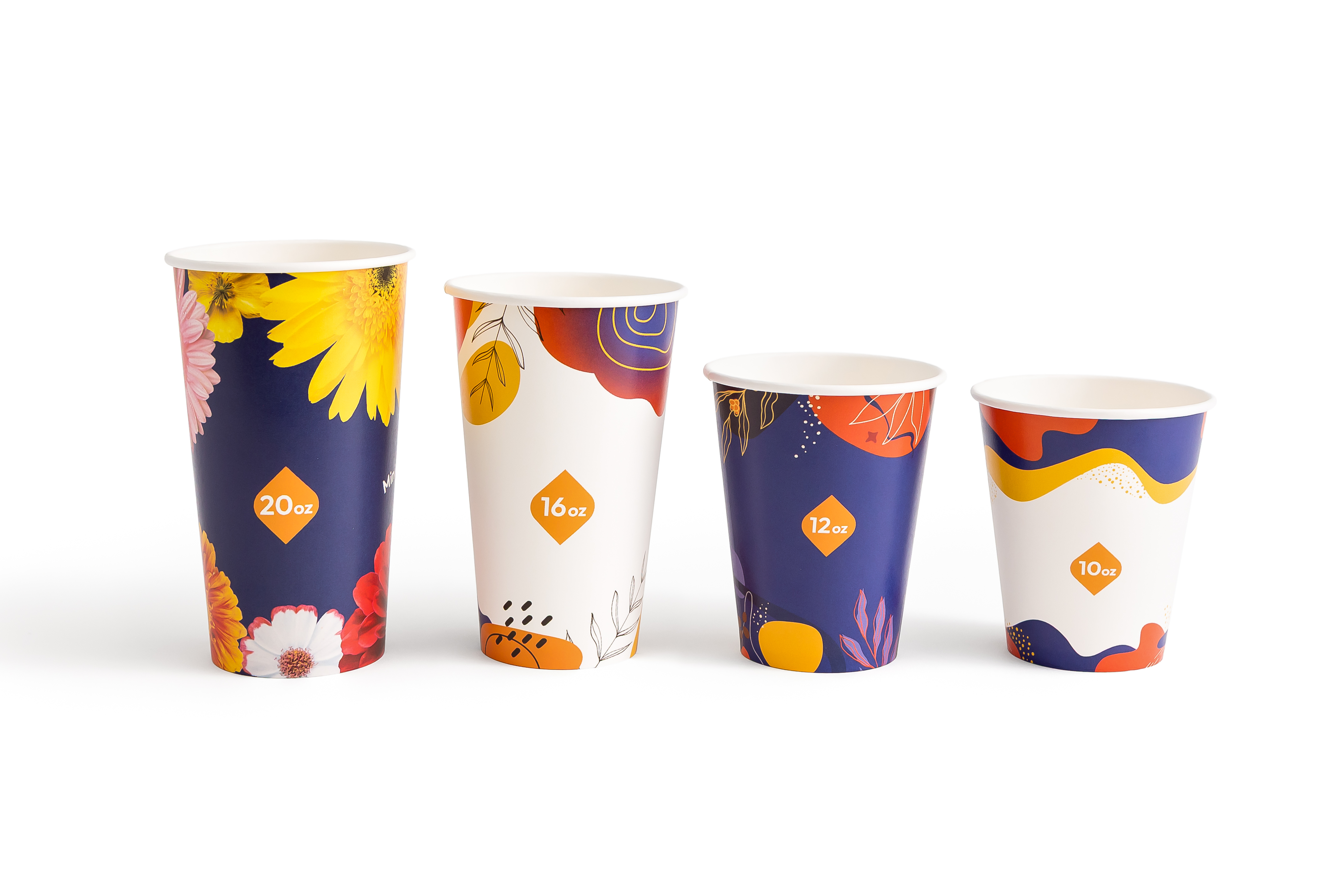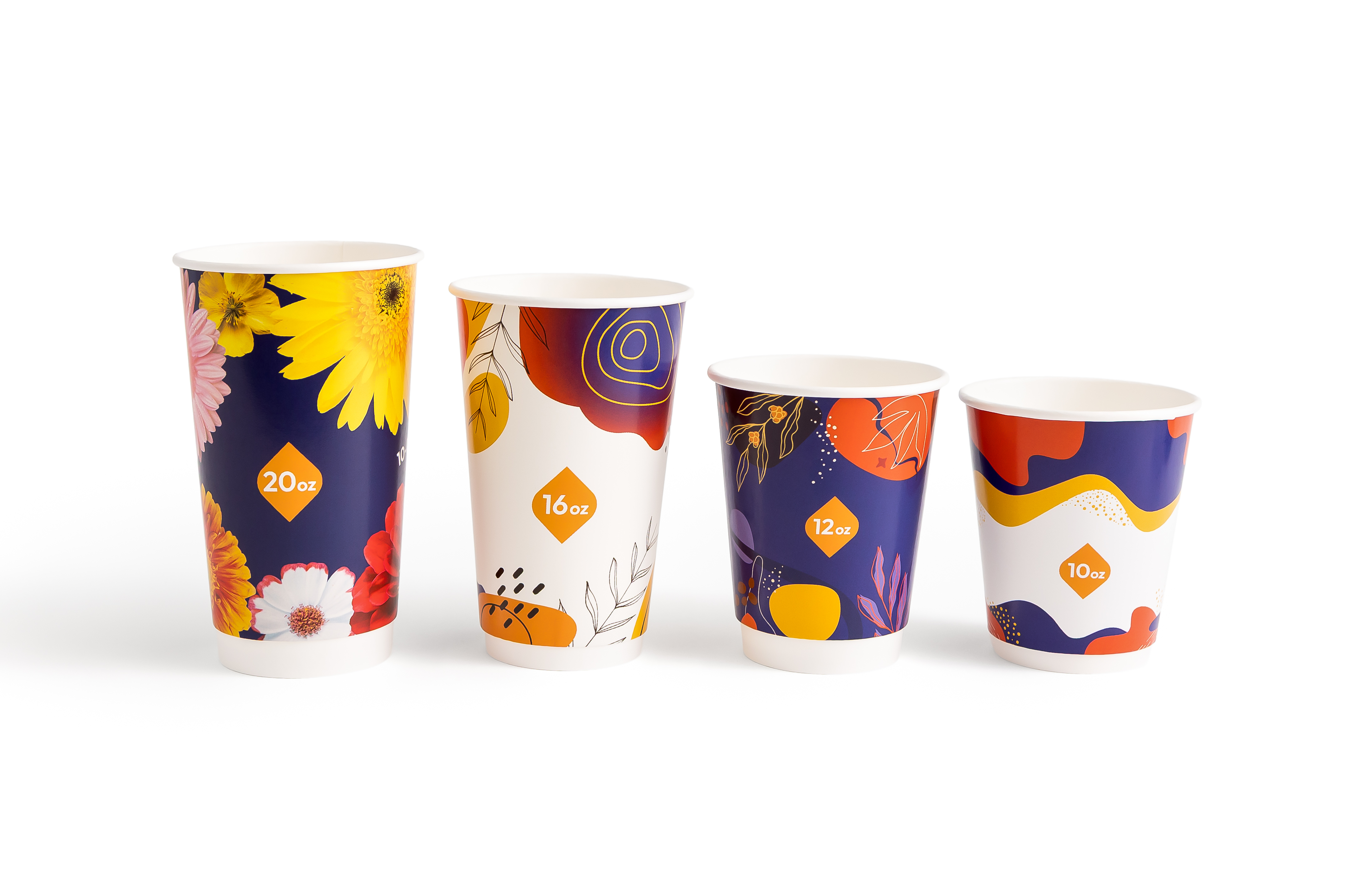 The pre-printed sample pack is a great way to explore the eight different cup options, the print quantity of our full-coverage digital ink, and the feel of our standard single-walled cups and premium touch double-walled cups.